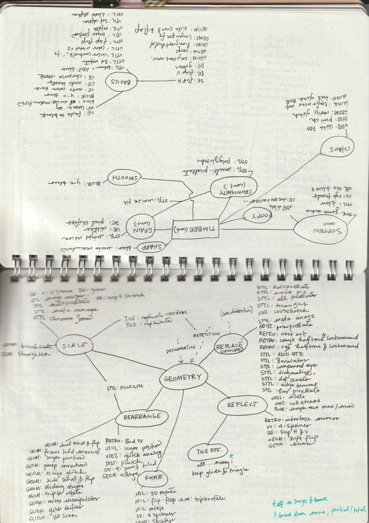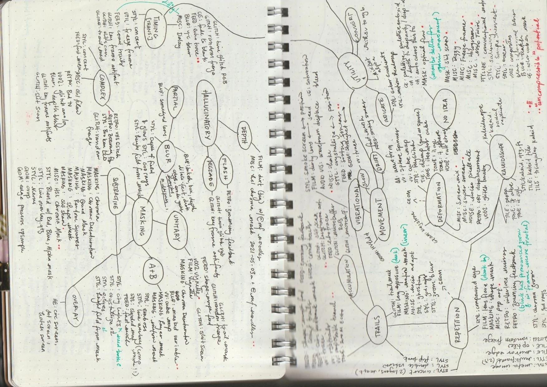 SarahGHP: When I first started using VDMX... I was like, I want to understand all of these [effects]. So I literally sat there... and got it all down in a big notebook. I like gave them weird names and like reorganize them. So I was like, these effects should really be a group because this is the like weird crunchy group.